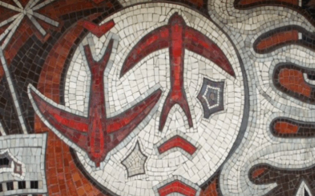 The imagery reflected both local identity and universal themes. Scenes celebrated education, science, craftsmanship, agriculture, and community life. Natural motifs—sunbursts, trees, animals, geometric borders—connected modern public art to longstanding Slavic traditions. Instead of portraying private or individual stories, these mosaics emphasized shared experiences, weaving art into the rhythm of daily life.